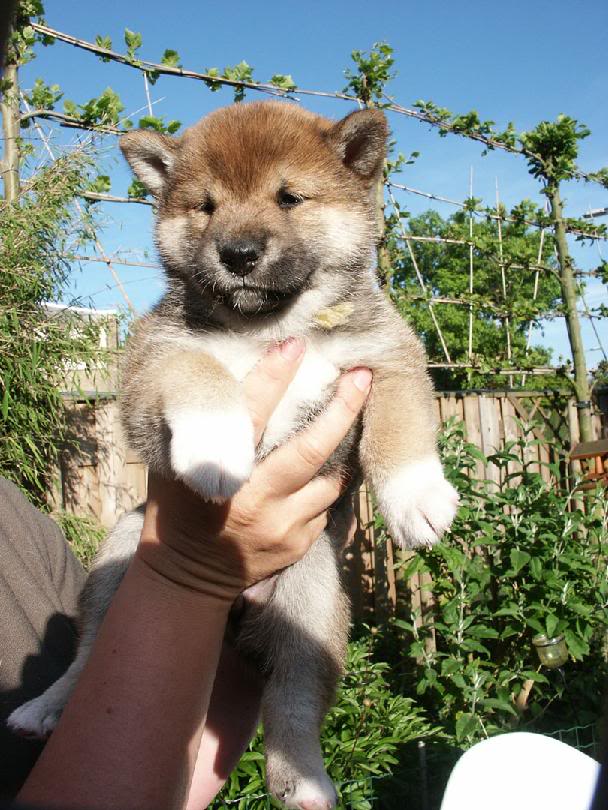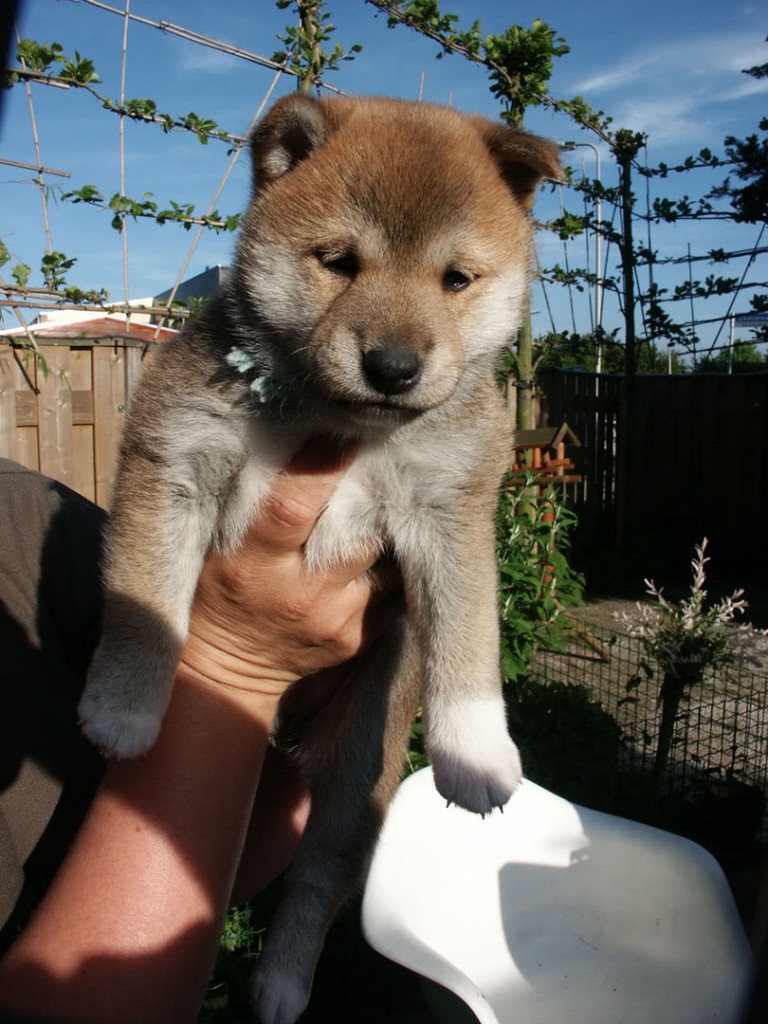 Het bovenstje teefje heeft het turquoise lintje en het onderste teefje het gele lintje (klik op een foto om deze te vergroten).
