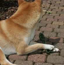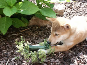 Nou was het vrouwtje ook nog zo slim om van die tandenborstels een foto te maken, anders hadden jullie ze nooit meer kunnen zien.Ze waren namelijk zo lekker dat wij super snel waren met onze tandjes poetsen.Ik moest natuurlijk Rontu wel in de gaten houden, zij wist op een gegeven moment niet meer het verschil tussen de tandenborstel en het plantje (ze was namelijk in een citronella plantje gaan liggen met de tandenborstel, en stinken dat ze daarna deed).