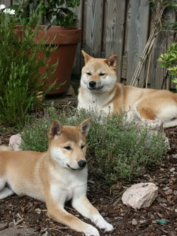 De hondjes hebben vanmiddag lekker in de tuin liggen zonnen.Rontu begint nu eindelijk ook aan de warmte te wennen.Ze gaat nog niet echt op haar gemak liggen, maar dat zal niet lang meer duren (of wel).Je ziet haar namelijk naar Keiko kijken met een blik in haar ogen van wat lig zij lekker te genietten.Daarna keek ze naar ons met de blik van is dit nu zonnen, daar wordt je toch niet moe van, ik loop liever te rennen en streken te verzinnen en die dan ook tot uitvoering te brengen.