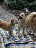 Nou ja, rustig, baasje was al met Keiko naar de behendigheids wedstrijd (hier in de buurt) gaan kijken en daar waren toen ook twee Shiba’s aan het mee doen.
