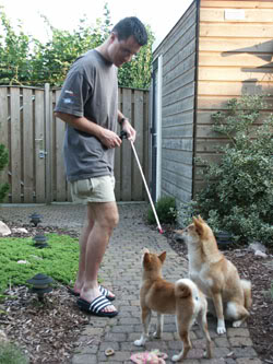 Nou om een uur of half elf was hij er en hij had een welkom onthaal door Keiko en Rontu die hem bijna onderste boven liepen.